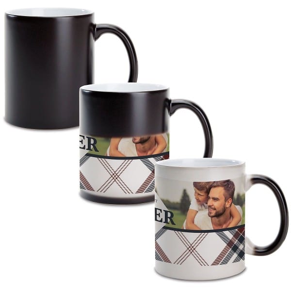 11oz Colour Changing Glossy Black Mug. Our popular colour changing mug makes an ideal novelty item, perfect for a joke/prank mug. Or even to reveal a special photo or message. Just add hot water and watch the image / text magically appear.