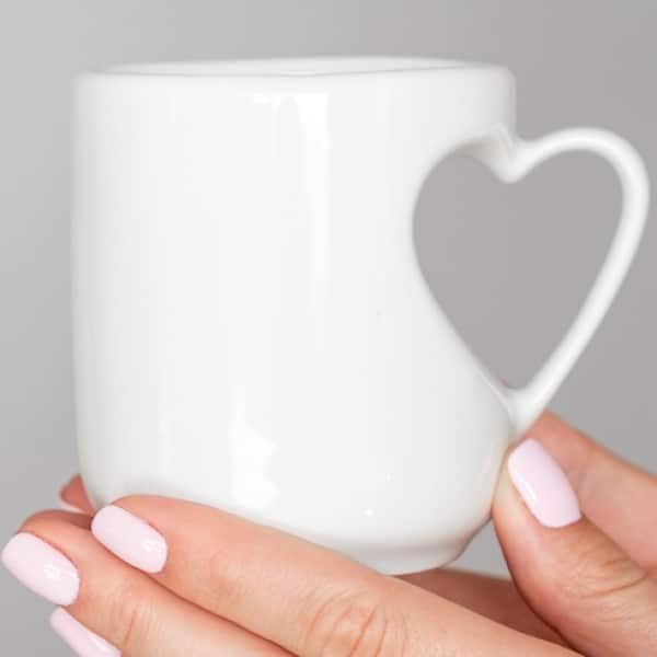 Heart Handle white ceramic 11oz mug with a love heart style handle. Fantastic for mothers day, birthday gifts or for valentines day.